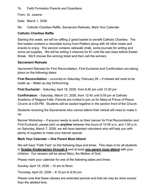 Copyright © Niagara Falls Roman Catholic Family of Parishes | All Rights Reserved